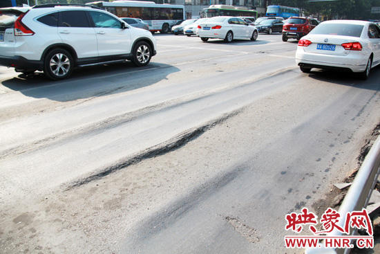 映象網(wǎng)訊(記者 王濤 文/圖)在經(jīng)過多日氣溫“燒烤”模式之下,鄭州市區(qū)多條馬路也扛不住了,路面變成了“波浪形”。