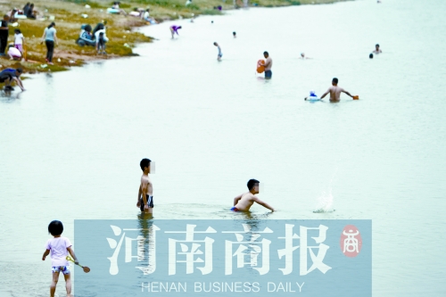 “我已經(jīng)連續(xù)來兩天了。”一男子說,他每次都會帶著孩子一塊來游泳。河南商報記者發(fā)現(xiàn),來此游泳的人群中,兒童約占一半,不少大人都帶著孩子來。