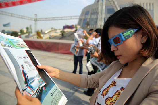 戴上3D眼鏡看報(bào)紙 鄭州盡收眼底