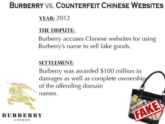 結(jié)果:Burberry獲得1億美元賠償,并獲得一個永久性授予,那些侵權(quán)域名將被轉(zhuǎn)移至Burberry網(wǎng)站