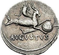 奧克塔維安.凱撒聽完大為欣喜,他希望讓所有人都看到自己那張星盤,于是他將這幅星盤刻成石板置于城市中心以讓所有人都能讀到。后來,在奧克塔維安獲得關(guān)鍵戰(zhàn)役腓力比和亞克興角戰(zhàn)役的勝利后,他成為了古羅馬的皇帝,并將自己的名字改為“奧古斯都.凱撒(63BCE-14CE)”。他統(tǒng)治了羅馬 41年,在他統(tǒng)治下的和平與繁榮則持續(xù)了200年,被成為“Pax Romana(羅馬帝國統(tǒng)治下的和平)”。為了紀(jì)念自己成為帝王的命運,他鑄了一個圓形銀幣,上面刻有他的上升星座摩羯的標(biāo)志。
