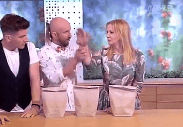 波蘭魔術(shù)師亮相電視節(jié)目表演,卻出錯(cuò)令女主持被大釘插傷手掌,在直播鏡頭前痛得大叫彎腰。波蘭魔術(shù)師亮相電視節(jié)目表演,卻出錯(cuò)令女主持被大釘插傷手掌,在直播鏡頭前痛得大叫彎腰。