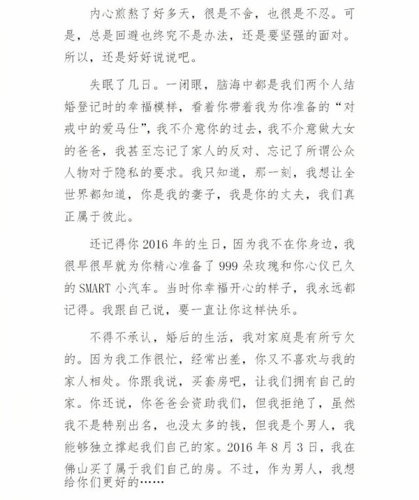 搜狐娛樂訊 5月23日凌晨,劉洲成發(fā)微博回應家暴致前妻林苗流產(chǎn)及要求前妻出錢買房等傳聞。劉洲成在文中以時間為緯度講述他與前妻相識相愛到結婚的過程,還列舉出前妻從懷孕到流產(chǎn)的事例,劉洲成在文中還稱“從認識你開始,就從沒花過你和你家一分錢”。此外,劉洲成更是曬出了昔日的聊天記錄、代付清單、借記卡賬戶歷史明細清單等證據(jù),疑似反駁前妻所述不實。