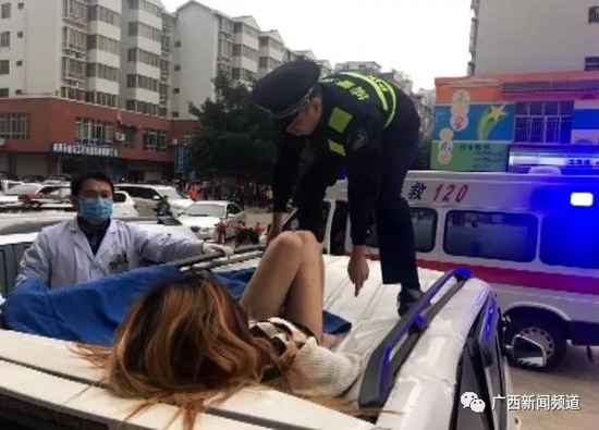 覃警官稱,年輕女子由于受傷嚴(yán)重,無(wú)法言語(yǔ),幾次掙扎著想坐立起來(lái)。他勸她別動(dòng),等待醫(yī)護(hù)人員。隨后,120醫(yī)護(hù)人員和城北派出所民警也趕到現(xiàn)場(chǎng),年輕女子被抬上救護(hù)車送往醫(yī)院搶救。到醫(yī)院后,城北派出所民警立即協(xié)助醫(yī)院辦好了相關(guān)入院手續(xù)。