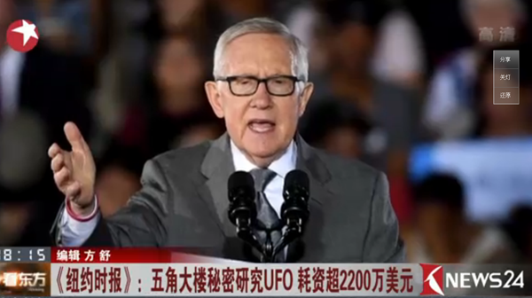 中新網(wǎng)12月18日電 綜合報道,自從1947年美國新墨西哥州羅茲威爾不明飛行物體(UFO)墜毀事件后,外界一直猜測美國政府曾接觸和研究“外星人”,但當(dāng)局多年來堅決否認(rèn)。然而,美國國防部方面近日承認(rèn),曾于2007年至2012年間,應(yīng)民主黨前資深參議員里德等多名議員要求,秘密撥款展開“先進(jìn)飛行威脅辨識計劃”,專門調(diào)查軍方匯報的目擊UFO事件。這是美國當(dāng)局首次承認(rèn)存在相關(guān)計劃。