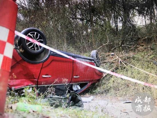 民警介紹,車輛在墜崖時(shí)時(shí)速非??欤瑝嬄鋾r(shí)水平距離至墜落點(diǎn)有80米左右,堡坎垂直高度達(dá)20米。幸好事發(fā)地點(diǎn)為斜坡式堡坎,坡上有茂密的植被緩沖,二人才得以保命。