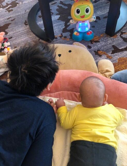 董子健與玩具爭寵 女兒肉嘟嘟后腦勺搶鏡