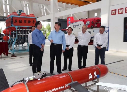 12日下午,習(xí)近平總書(shū)記來(lái)到位于海南三亞的中國(guó)科學(xué)院深??茖W(xué)與工程研究所,仔細(xì)察看“海翼”號(hào)深?;铏C(jī)、“天涯”深淵著陸器等設(shè)備,并同“深海勇士”號(hào)載人潛水器設(shè)計(jì)師和深潛團(tuán)隊(duì)親切交談。