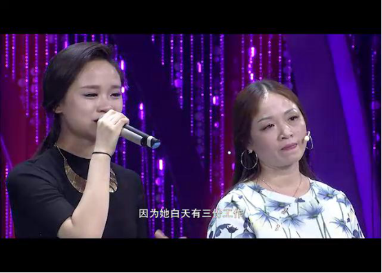 原來在父親去世多年后,母親再婚又組成了新的家庭,而再婚一事遭到了陳歡強烈的反對,母女間因此產(chǎn)生了心結(jié)。在舞臺上,陳歡說其實自己一直以來反對的原因是害怕母親再婚后會忽略她,讓已經(jīng)失去父親的她又失去母愛。直到自己上了大學(xué)后,才逐漸理解了媽媽當(dāng)時的選擇和做法。面對觀眾,陳歡說自己現(xiàn)在的心愿是與媽媽和繼父一家人一起拍一張全家福,一家人從此幸福地生活在一起。面對女兒的眼淚,陳歡媽媽也敞開心扉與女兒述說了自己的心里話,她回憶起多年前的往事,當(dāng)幸福美滿的家庭突遭變故,一下子什么事情都要陳歡媽媽來操辦,從一開始的不知所措,到最后堅強的挺了過來,多年來的艱辛,陳歡媽媽只說了一句“沒事了”,她讓現(xiàn)場所有人都重新體會到“女子本弱小,為母則強”這句話深刻含義。