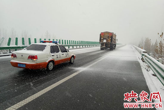 從河南省交通運輸廳了解到,為確保高速公路安全暢通,全省高速公路運營管理單位迅速啟動應(yīng)急預(yù)案,全體動員,積極行動,頂風冒雪除雪保通。