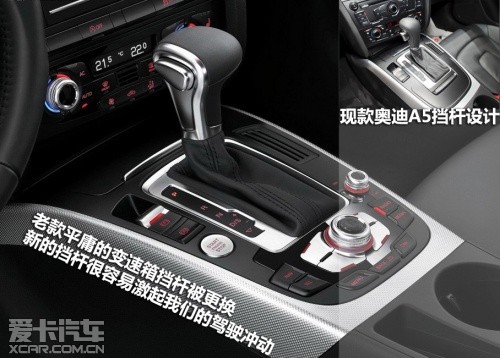 雖然新款奧迪A5的中控臺布局沒有進行新的設(shè)計,但是新車采用了全新設(shè)計的儀表盤,一體化設(shè)計的儀表與內(nèi)飾的融合更加緊密。另外老款平庸的變速箱擋桿被更換,新的擋桿很容易激起我們的駕駛沖動,另外新車在MMI操作面板的很多細節(jié)上也有變化。