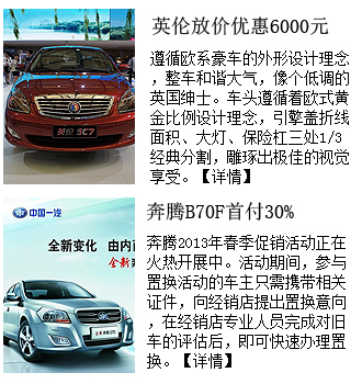 導(dǎo)語(yǔ)映象網(wǎng)汽車頻道,為了給廣大愛(ài)車人士提供更多的車市信息,創(chuàng)辦了車市行情欄目,欄目提供中原車市各大4S店的打折信息、活動(dòng)等信息,為您購(gòu)車、選車、試車做向?qū)А?/FONT>