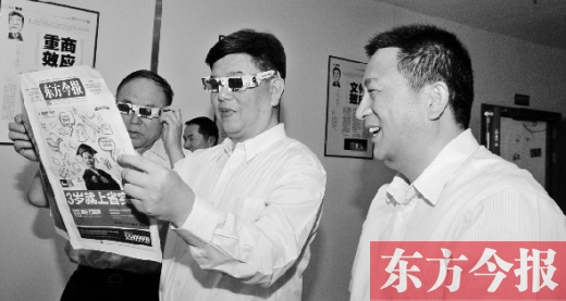 童剛副局長十分關(guān)心東方今報(bào)的發(fā)展,向東方今報(bào)社社長趙國平詳細(xì)詢問了解報(bào)社的新聞宣傳、廣告經(jīng)營、發(fā)行情況以及員工待遇,得知東方今報(bào)全省發(fā)行覆蓋、全媒體聯(lián)動(dòng)運(yùn)營并在河南率先發(fā)行出版3D版報(bào)紙時(shí),童剛副局長在調(diào)研現(xiàn)場興趣盎然地戴上3D眼鏡體驗(yàn),并贊揚(yáng)東方今報(bào)的創(chuàng)新走到了前列。