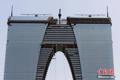 9月2日,位于江蘇蘇州工業(yè)園區(qū)的東方之門幕墻安裝進入收尾階段,頂部幕墻正在施工中,幕墻穹頂即將封閉。