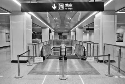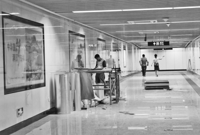 進站通道,工人師傅正做收尾施工。