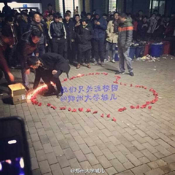 有時候表白失敗的因素不一定是被拒絕了,還有可能是學校領導的滅火器!在鄭州財經學院,女主還沒來,一場還未開始的表白就已經結束了,心疼那個男同學,估計現(xiàn)在那帥男已經哭暈在廁所,嗚,領導“法?!蹦氵€我愛情。