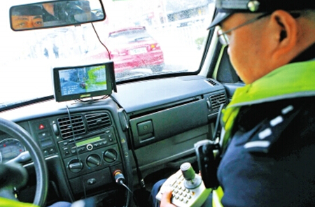警車上配備的車載動(dòng)態(tài)取證系統(tǒng),在巡邏的同時(shí)可對(duì)道路上的交通違法行為進(jìn)行攝錄取證。記者白周峰攝影