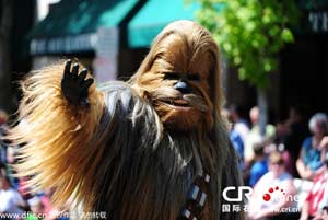 當(dāng)?shù)貢r間2014年5月17日,美國俄勒岡州麥克梅南明,第15屆麥克梅南明UFO節(jié)大游行。該節(jié)日為期4天,是為了紀念1950年Evelyn和Paul Trent目睹并拍下了一飛碟形狀的物體在他們農(nóng)場上空盤旋的照片。圖片來源:Alex Milan Tracy/東方IC