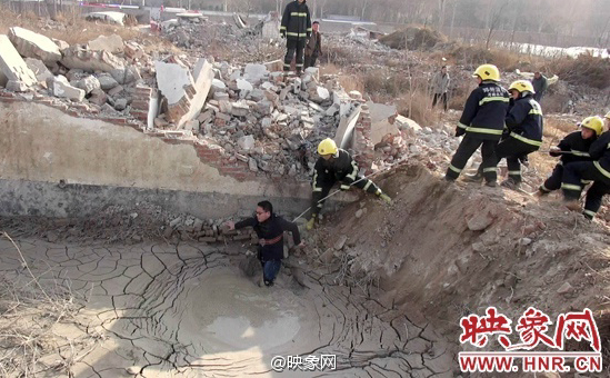 1月17日,鄭州大河路青寨村一處拆遷荒地上,中州大學一男生抄近路返校,因為內(nèi)急,看四周沒有廁所,就走進附近大坑隱蔽處方便,哪知越陷越深,半個身子陷進去動彈不得。見四周無人,他趕緊撥打119求援。1個小時后被救出來。