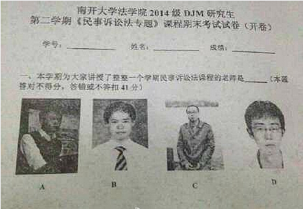南開大學法學院某科目的期末試卷被學生上傳,瞬間引爆學生圈。同學們表示:“內(nèi)傷了”“臉盲怎么辦”“想想真的很有道理??!”…也有同學吐槽,“老師您用的是大學時候的證件照,現(xiàn)在不長這樣了…”這還真是一個刷臉的時代啊