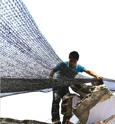 成堆的建筑垃圾高低不平,有的高達數(shù)米甚至10多米,在上面鋪防塵網(wǎng)并不是件容易的事。鋪防塵網(wǎng)的工人說,他們一天只能鋪1萬多平方米。鋪防塵網(wǎng)難度不小,還有很高的成本,讓人意想不到的是,竟然有人蓄意搞破壞。