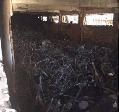 今天凌晨1點半左右,鄭州二七區(qū)新浦街5號院的電動車棚突發(fā)火災,近百輛電動車被燒成骨架。據(jù)目擊者稱,電動車充電時爆炸引發(fā)火災。小區(qū)居民稱,小區(qū)消防通道不暢,消防栓竟然沒有一滴水,耽誤了最佳撲救時間。