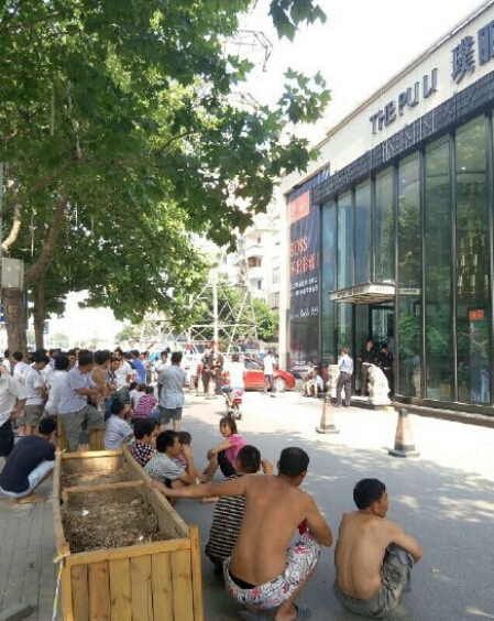 7月30日早上,鄭州黃河路與經(jīng)二路口,一百多名農(nóng)民工圍在璞麗中心售樓部門前討薪。據(jù)了解,這些民工大多來自河南,還有陜西、四川、云南等地。他們說,從春節(jié)后到現(xiàn)在的半年時間里,沒有發(fā)過工資?,F(xiàn)在工地已經(jīng)停工20多天。