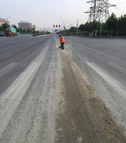 29日晚,西四環(huán)東半幅快車道上拋灑了一地的水泥混凝土,最寬處達(dá)2米多寬,厚度約有2指厚。經(jīng)過大車重車一夜的碾軋,30日上午,混凝土早已凝固在路面上,20多名環(huán)衛(wèi)工耗時3小時才將路面清理干凈。
