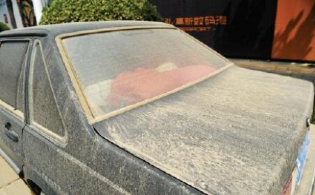 9、鄭州市民做揚(yáng)塵實驗 轎車停路邊三天落滿黃土