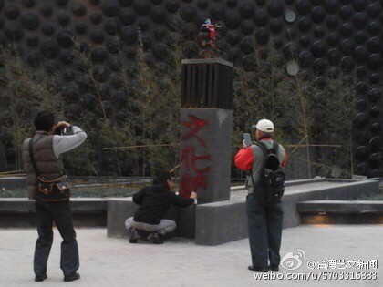 據(jù)臺媒報道,臺北“故宮”南院前天開幕試營運,成龍贈送十二生肖獸首公共藝術給故宮。但有媒體報道是統(tǒng)戰(zhàn),今天傍晚4、5點有一男一女突然朝龍和馬獸首上倒紅漆,被人發(fā)現(xiàn)報警,目前警方已將兩人帶回嘉義縣太保分駐所偵訊中。