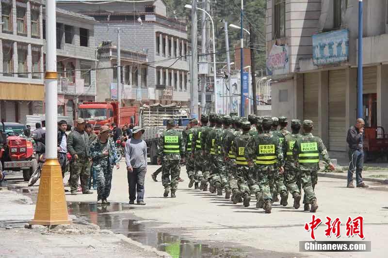 5月12日下午15點05分,尼泊爾再次發(fā)生里氏7.5級地震,吉隆方向震感強烈。地震發(fā)生后,機動支隊二大隊立刻組織22人的救助小組趕赴幫興村進行救援,挨家挨戶開展搜救,并轉移和安撫受災群眾。在吉隆鎮(zhèn)街面擔負巡邏任務的官兵成功從救出1名受傷群眾,并及時將其送往醫(yī)療點進行醫(yī)治。目前,大隊官兵正繼續(xù)對附近村莊進行排查。中新社發(fā) 楊鴻輝 攝