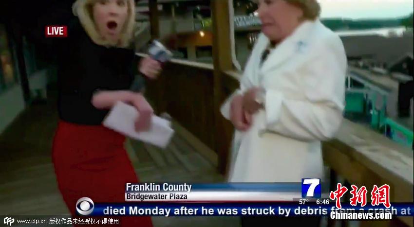 在沃德倒地前拍攝的畫(huà)面中,可以聽(tīng)到槍聲,帕克和采訪對(duì)象在尖叫。畫(huà)面顯示,帕克和一名女性采訪對(duì)象正在一處陽(yáng)臺(tái)上談及旅游業(yè)發(fā)展,槍手似乎從后面靠近。