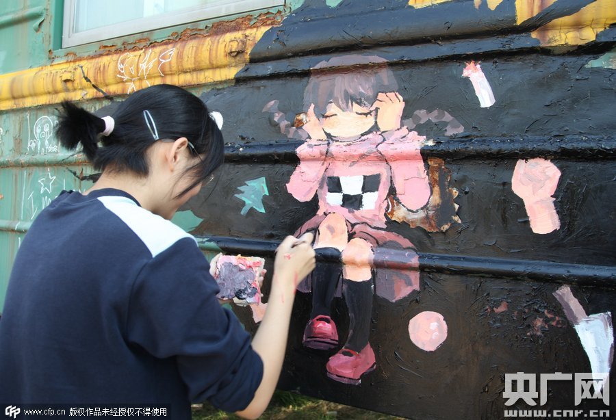 2015年10月10日,鄭州四禾美術中學充分發(fā)揮美術生的優(yōu)勢,對火車車身1進行涂鴉改造,使火車宿舍看起來更加漂亮。