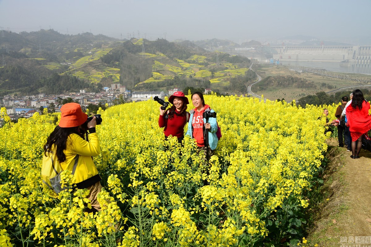 2016年3月6日,湖北宜昌,隨著春季氣溫的回升,湖北宜昌三峽壩區(qū)高家溪油菜花絢麗綻放,把三峽大壩映襯得分外壯觀美麗,吸引了眾多攝影發(fā)燒友和游人前來踏青采風(fēng)游覽。當(dāng)天一位練瑜伽的大媽陶醉于壩前花海,秀起了瑜伽,一時吸引了攝影發(fā)燒友和游人瘋狂拍攝。圖為大媽花海中秀瑜伽。