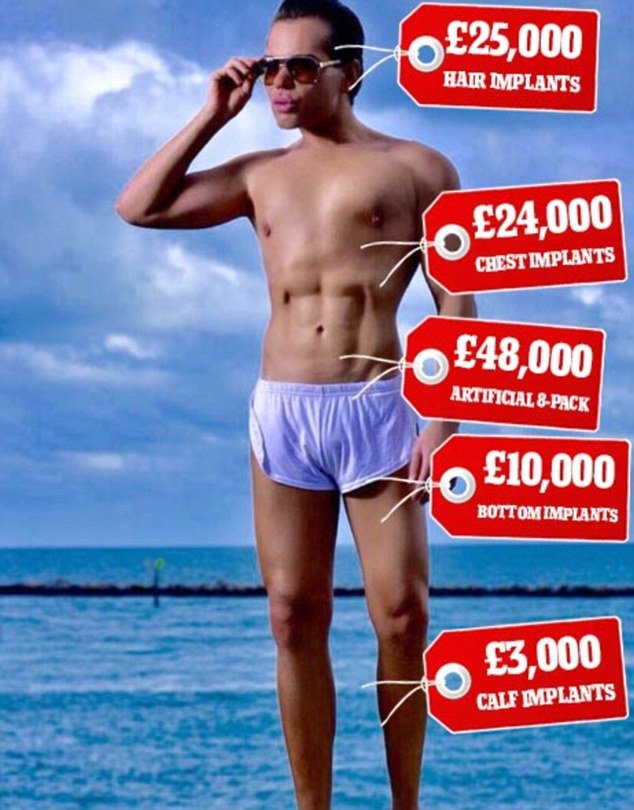 據(jù)悉,阿爾維斯在倫敦學(xué)習(xí)期間開始不滿自己的身形、容貌,尤其是當(dāng)他和帥氣新潮的朋友相處時,這種情緒更為強(qiáng)烈。于是,在2004年,阿爾維斯踏進(jìn)了整容所的大門,便開始了他持續(xù)至今的整容生涯。到目前為止,阿爾維斯大大小小接受了42次手術(shù),隆鼻、削骨、抽脂、填硅膠……累計(jì)花費(fèi)了30.5萬英鎊(約合人民幣280萬元)。
