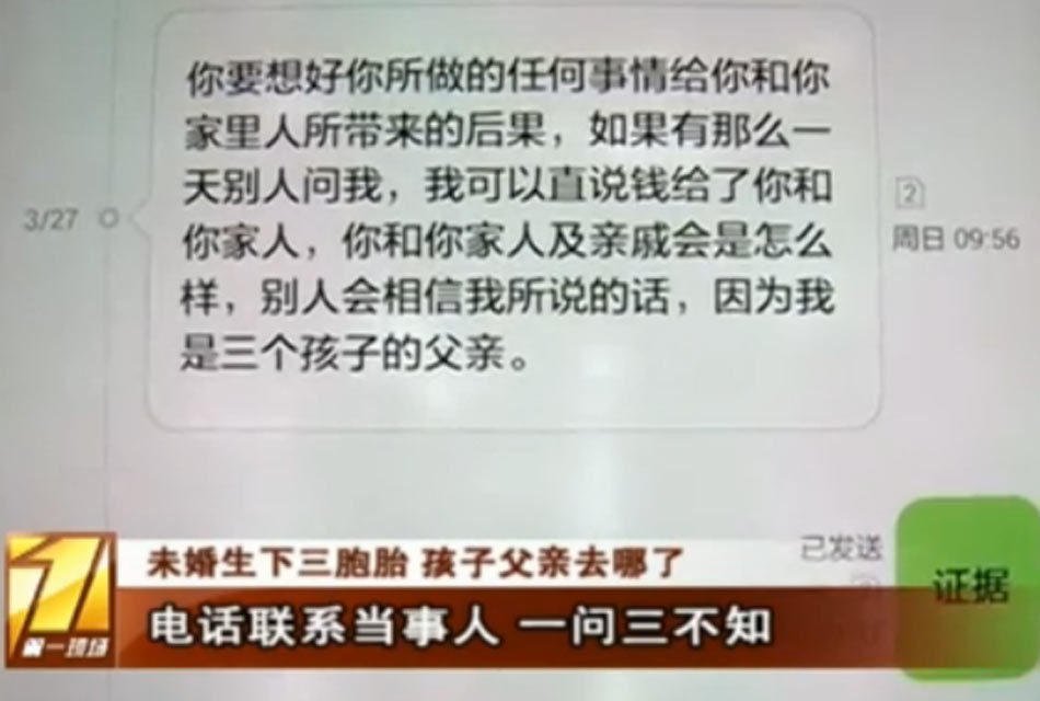 據(jù)深圳電視臺(tái)第一現(xiàn)場(chǎng)3月29日?qǐng)?bào)道,去年8月馬小姐生下了三胞胎,可自從孩子出生后,孩子的父親就避而不見(jiàn),這讓馬小姐很無(wú)奈,也很無(wú)助。