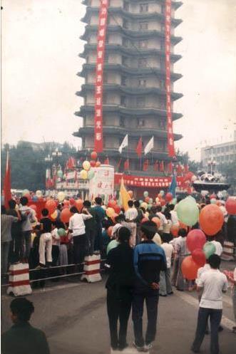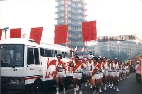 火炬從二七廣場開始傳遞。“李寧”運(yùn)動服、“健力寶”飲料、熊貓“盼盼”成為當(dāng)時的大亮點(diǎn)。(攝影 | 尹人)