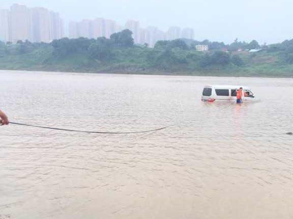 消防員趕到現(xiàn)場發(fā)現(xiàn)一輛金杯車位于江上,一名群眾正在竭盡全力往岸邊靠近。考慮到江水十分冰冷,被困人員在江水中浸泡已久,隨時可能引發(fā)抽筋,增加救援難度。消防員穿好救生衣和防護(hù)裝備之后,立即下水營救該名司機(jī),天空下著大雨,為救援工作增加了難度。在經(jīng)歷了15分鐘左右的救援之后,成功將司機(jī)救上岸。但是車子依然浸泡在水里,車內(nèi)有大部分積水,坐墊也已然被淹沒,現(xiàn)場指揮員立即下達(dá)作戰(zhàn)命令,趕緊將車子拉到岸邊,在一眾熱心群眾和消防員的共同努力下,車子也成功抵達(dá)岸邊。