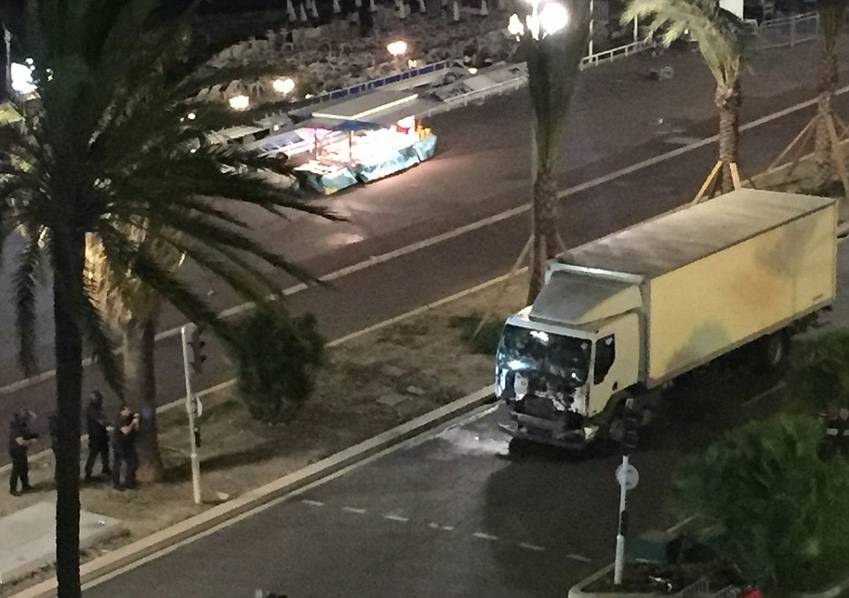 當(dāng)時(shí)人們正在當(dāng)?shù)乜礋熁鸨硌?,街上都是游人,一輛貨車以每小時(shí)60-70公里的速度沖向人群。據(jù)現(xiàn)場(chǎng)目擊者稱,期間還聽見數(shù)聲槍聲。