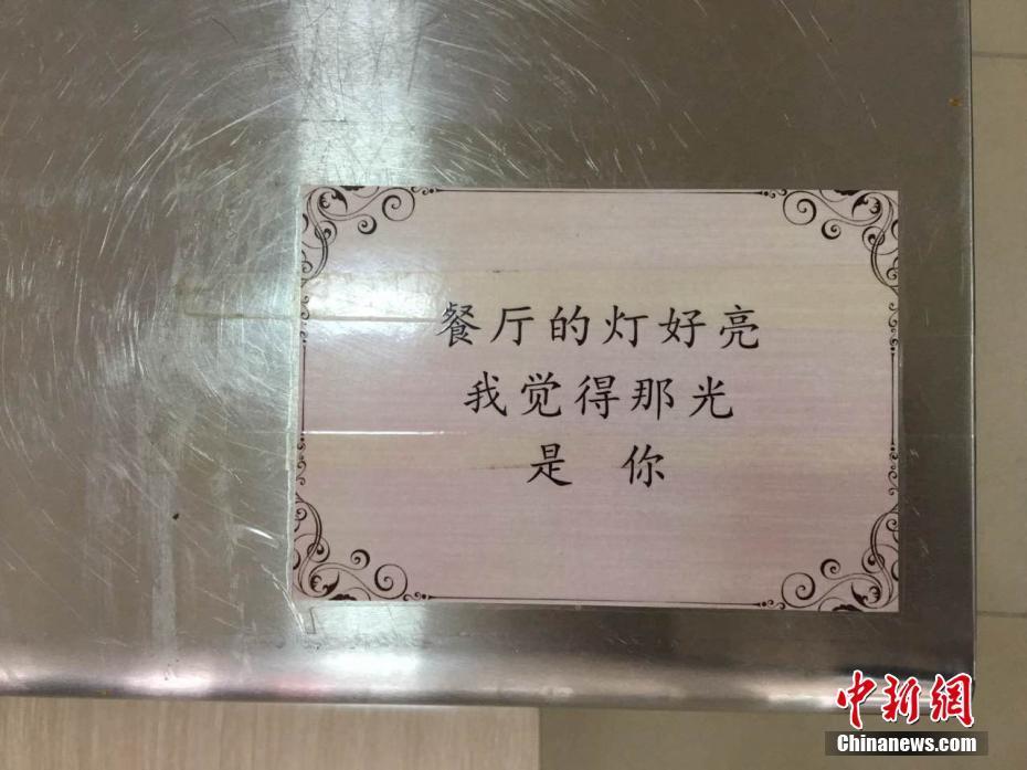 “這些情詩是開學前貼上的,剛開始只是想讓餐廳更個性化一點?!钡聦氹拚f,很多人覺得食堂就是個做大鍋菜的地方,吃飽肚子就行?!拔蚁爰右稽c不一樣的元素,就發(fā)動朋友收集和吃飯有關的三行情書。”燕武 阿琳娜 攝影報道