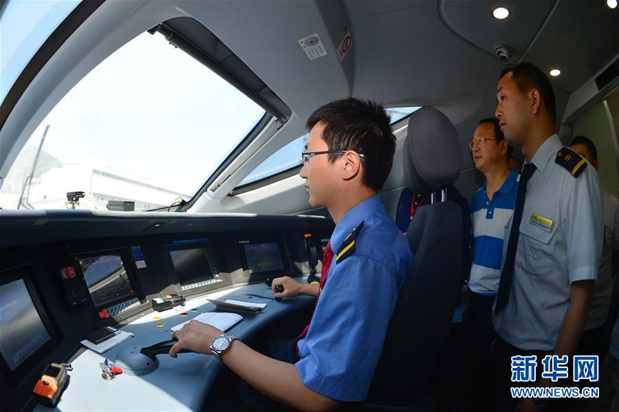 技術人員在寶蘭高鐵高速綜合檢測列車司機室作業(yè)(5月16日攝)。