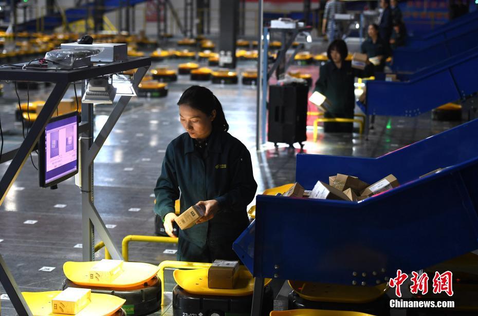 智能機(jī)器分揀機(jī)器人“小黃人”將包裹投遞到各個(gè)地區(qū)。文/韓蘇原 夏瑩 圖/韓蘇原