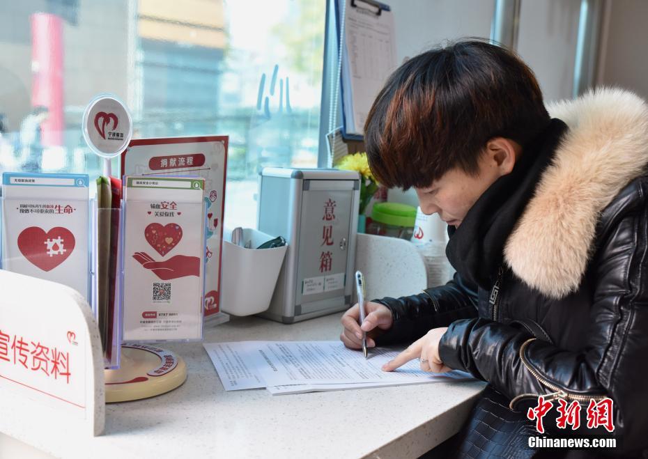 11月26日,浙江省寧波市江北區(qū)莊橋街道李夢小區(qū)北側原李家村地塊外圍空地發(fā)生爆炸。截至目前,該事件造成2人死亡,4人重傷,15人輕傷,2人失聯(lián),部分群眾留院觀察。事件發(fā)生后,當?shù)厥忻褊x躍為爆炸傷員獻血,據寧波市中心血站統(tǒng)計,截至27日14時,共有306位愛心人士成功獻血,獻血總量達99800毫升。圖為一位市民正在填單準備獻血。 何蔣勇 攝