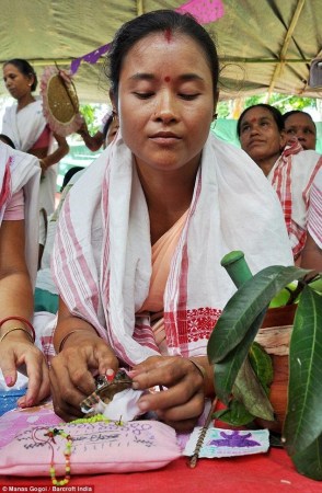 在婚禮上,主持婚禮的圣徒吟誦傳統(tǒng)的祈禱詞,婚禮結(jié)束后,青蛙會(huì)被帶到附近的小池塘放生。村民則繼續(xù)用餐,有超過(guò)900盤食物被供應(yīng)。參加儀式的村民Gogoi說(shuō):“我們放生青蛙,這樣它們可以過(guò)它們自己的生活,同時(shí)向雨神傳達(dá)我們的信息。舉行這樣的儀式是不得已的措施,我們感謝上帝能夠讓我們的愿望成真?!?/p>