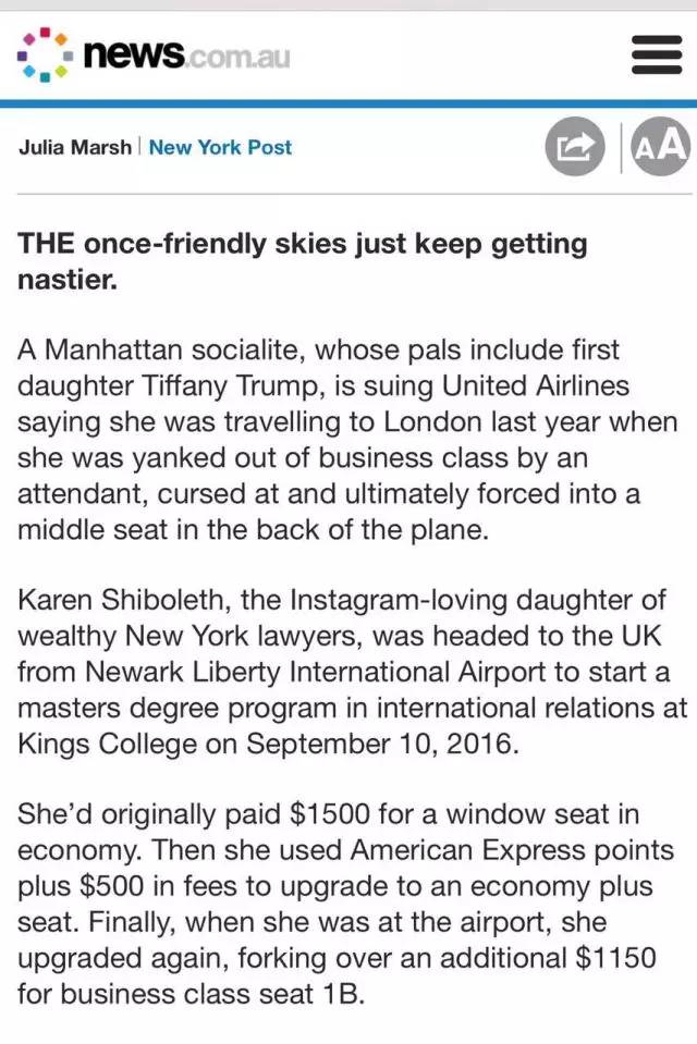 于是在“遭受委屈”之后,這位名媛選擇起訴美聯(lián)航。。