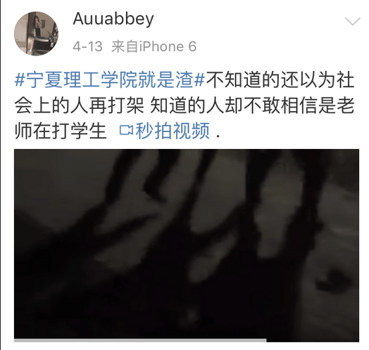 寧夏理工學院在組織對學校安全例行檢查過程中,因發(fā)現(xiàn)學生在宿舍內(nèi)抽煙,在制止時學校工作人員與其發(fā)生肢體沖突。澎湃新聞(www.thepaper.cn)4月15日從石嘴山市政府新聞辦了解到,經(jīng)檢查,該學生在沖突中,腿部、肘部兩處有皮外擦傷,沒有任何其他傷害性癥狀。石嘴山市教育體育局及寧夏理工學院與學生及其家長溝通,目前已達成諒解,同時警方介入調(diào)查,將根據(jù)調(diào)查結(jié)果依法對相關(guān)責任人做出公正處理。
