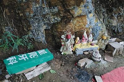 從山腳到山頂,“奶奶”分布在十余個地方,有的“奶奶”神像棲身于殿廟內(nèi),有的“奶奶”神像安置在藍(lán)色彩鋼搭建的簡易棚子中,有的“奶奶”神像則是露天擺放。