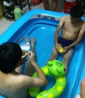 對(duì)于沒有空調(diào)的宿舍,夏天是最難熬的。看來(lái)為了避暑,童鞋們想盡了各種奇葩招數(shù)啊!宿舍居然還有泳池?。『芮鍥霭。?!有木有?。。?/p>