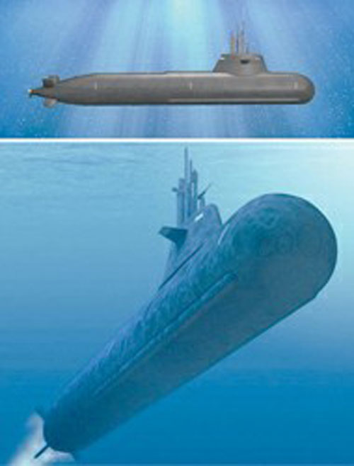 該型艇長63米,寬6.4米,吃水6米,水面航行速度超過l0節(jié),以電池模式潛航時速度超過20節(jié),以AIP模式潛航時航速5節(jié),航程1000海里,水面排水量1700噸,水下排水量1900噸,艇員編制17~26人。采用X型艉舵,四個舵面均有垂直舵和水平舵的雙重功能,且每個舵面都可以獨立控制,大大提升潛艇機動性能。