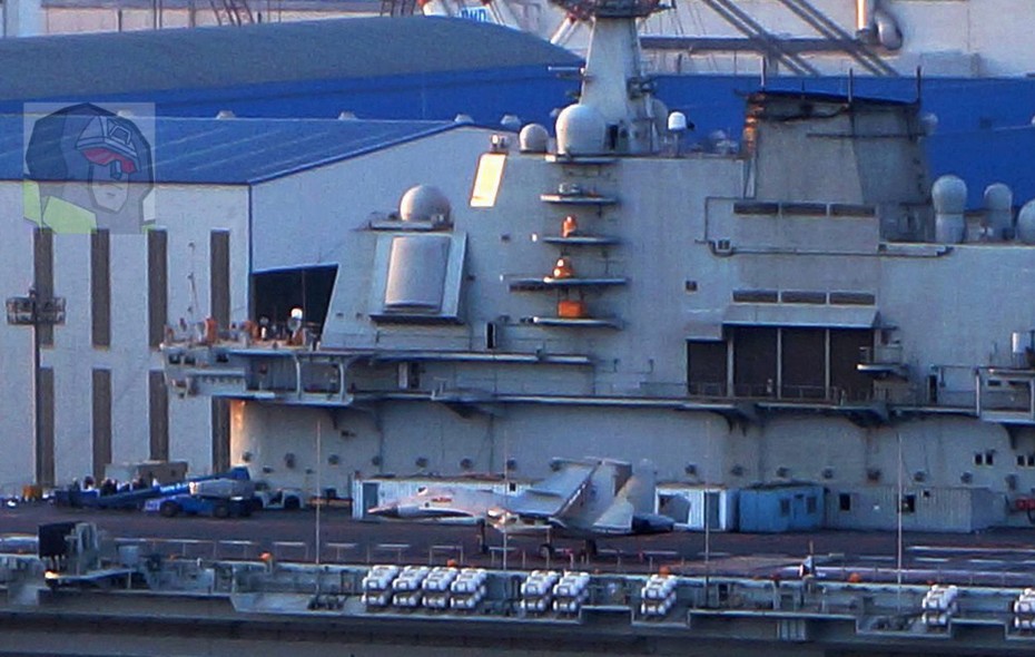 2012年2月28日,據(jù)網(wǎng)友拍攝的照片顯示,正在大連進(jìn)行改裝的瓦良格號(hào)航母的改裝工作有了最新進(jìn)展,甲板上出現(xiàn)了兩架類似艦載機(jī)的模型。(超大軍事 從小就黑供圖)